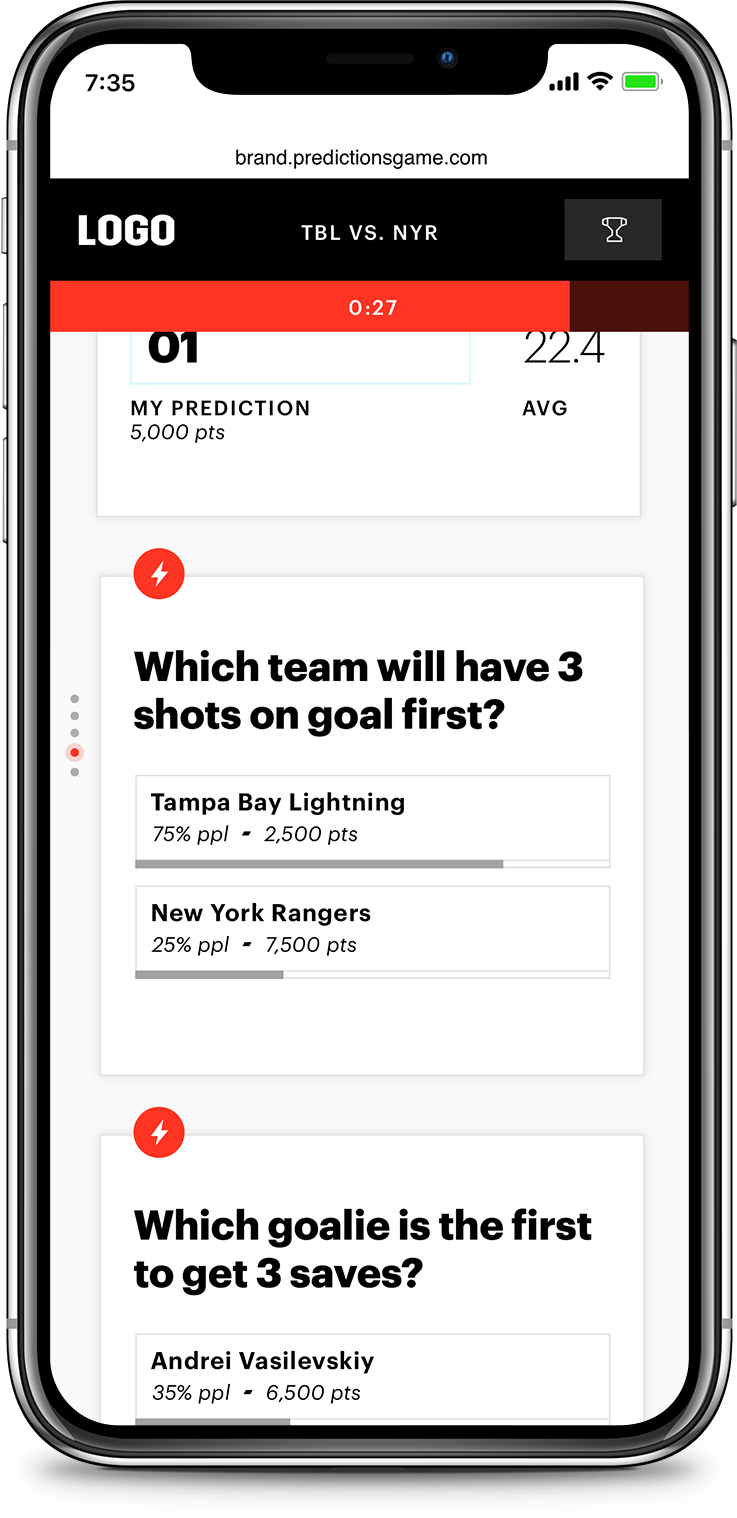 Request Free DemoActivate your audience by elevating the game — a 2nd-half blowout is now a must-watch until the end with real-time, free-to-play predictions.